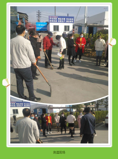 在当前新冠肺炎疫情防控紧要阶段,为做好防疫工作,组织劳务人员在开始前对所有参加人员进行了测温。