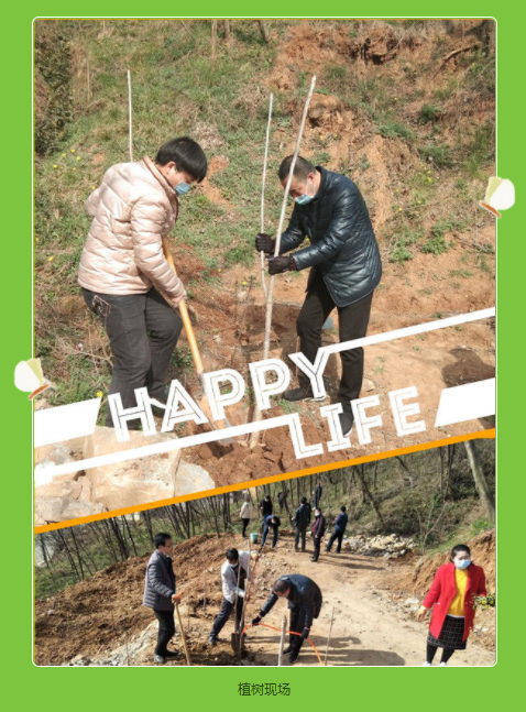 此次植树活动,不仅增强了我们团结、互助、友爱的团队协作意识,更让大家感受到了植树造林、保护生态环境、保护家园的一份责任。今后,我们将本着“一人一颗树、人人一片森林”的美好理念,致力于建设我们的“绿色”家园!